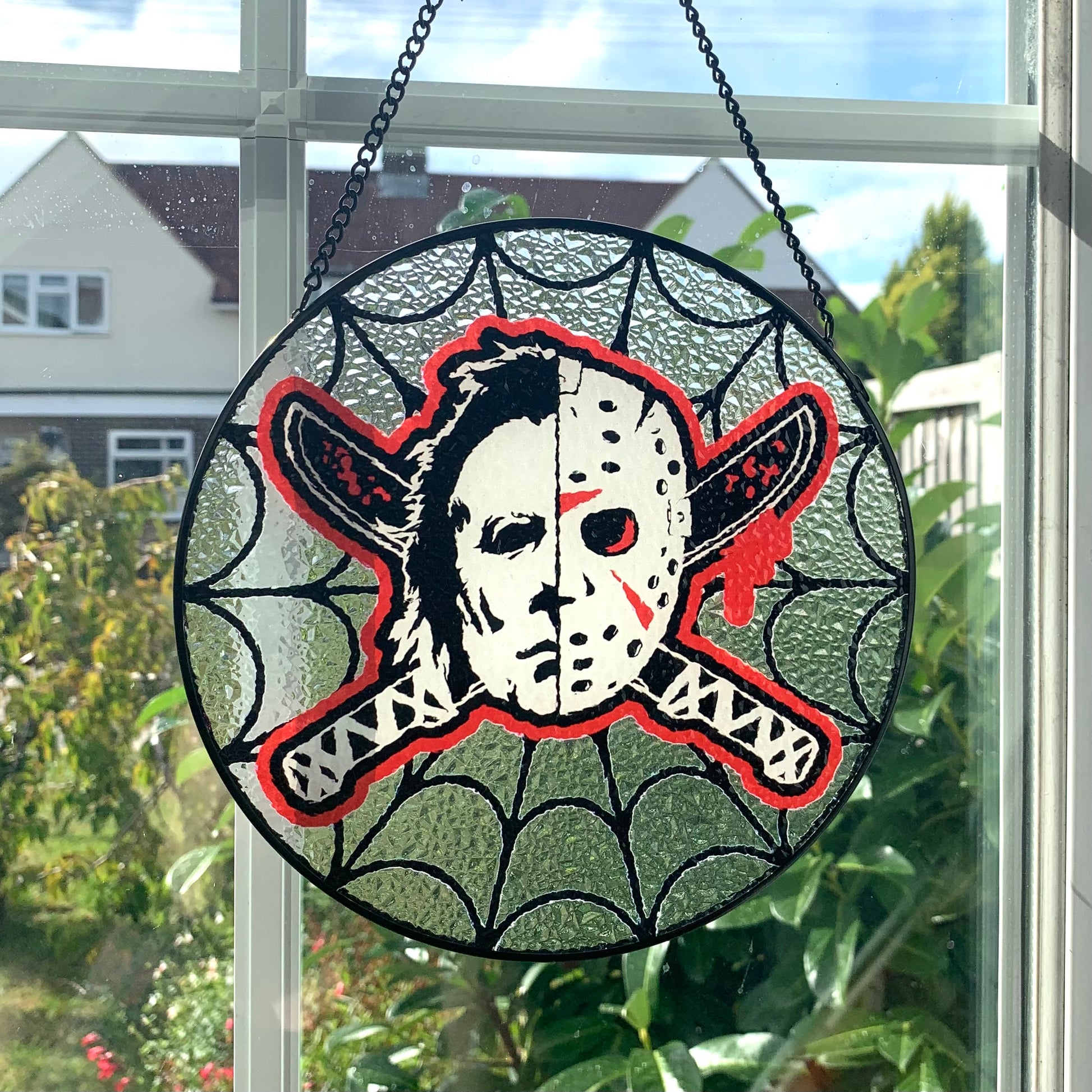 Horror movies glass handcrafted suncatcher, Halloween, Jason Voorhees, Michael Myers