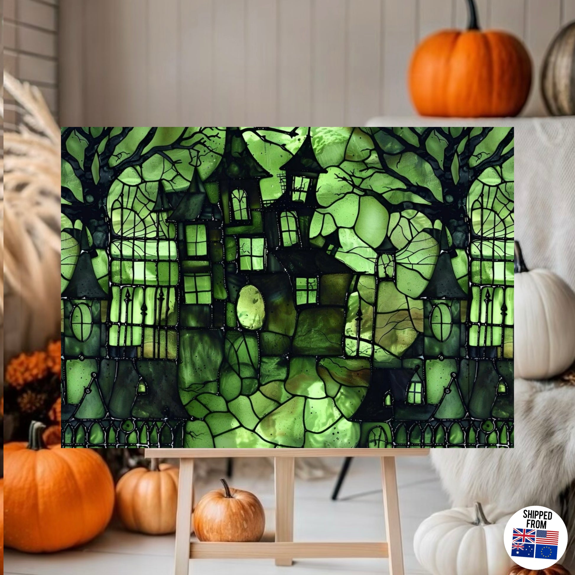 Spooky mansion stained glass effect Premium Matte Paper Poster, Halloween